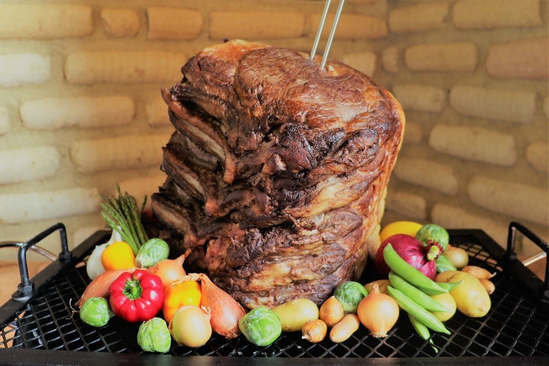 「王様のシュラスコ」では、愛知県の南西、内海に囲まれた穏やかな風土で大切に育てられた知多牛の「響(HIBIKI)」というブランド牛を塊肉で使用。「響」は肥育期間が出荷月例22カ月以上、かつ知多半島で1年以上肥育された交雑種で、柔らかな肉質と国産牛ならではの甘みが特徴。「rib(肋骨)」×「roast(焼く)」が由来とされるリブロースはその名の通り焼いて食べるのに最適な部位とされております。