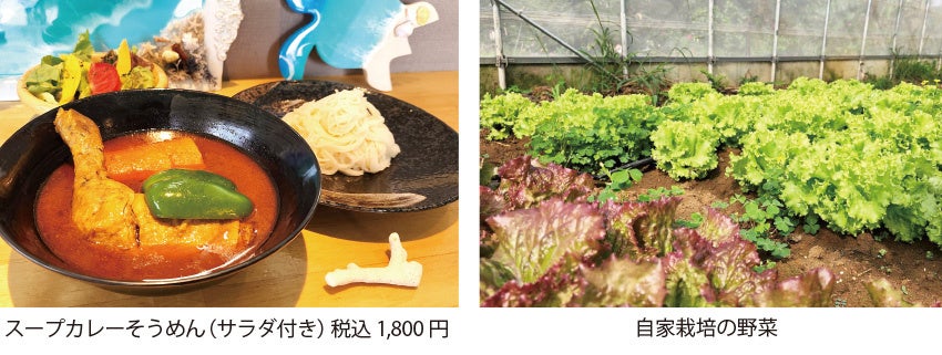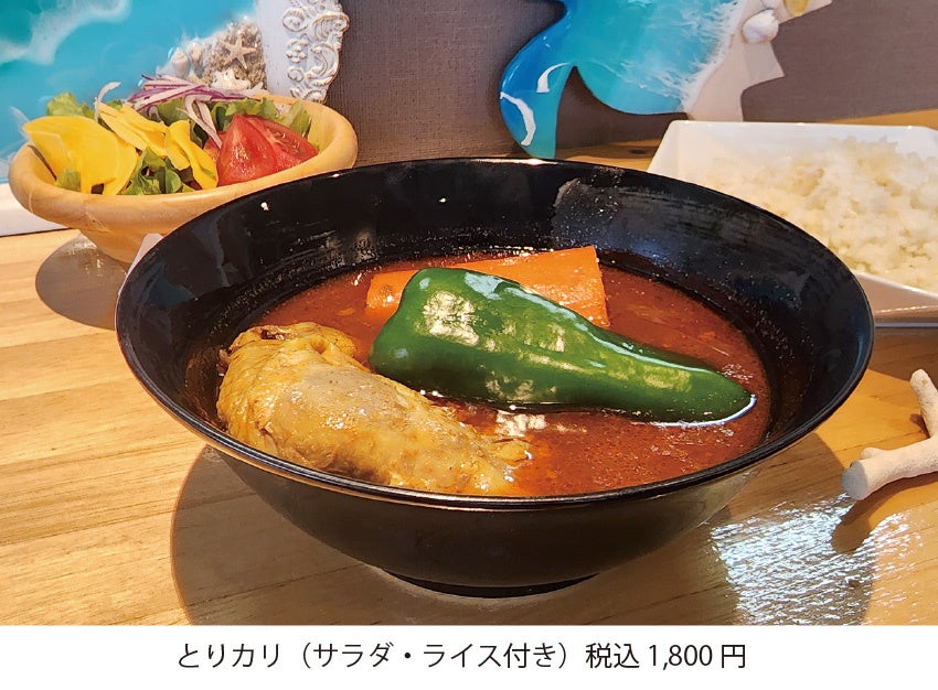 「アジャンタインドカリ店 宮古島出張所あきちゃんの店」では、「アジャンタインドカリ店 伊豆長岡」不動の人気メニュー「とりカリ」と、「アジャンタインドカリ店 宮古島出張所あきちゃんの店」でしか味わえない限定メニューの「スープカレーそうめん」を提供します。大きな鶏肉と野菜が入ったスパイスの効いたスープに、さっぱりとしたそうめんをからめてお召上がりください。味わい深いスープカレーにはサラダがついており、店主が真心をこめて育てた自家製野菜を使用しています。癖になるスープカレーと新鮮な野菜を使ったサラダのセットを堪能できるのは「アジャンタインドカリ店 宮古島出張所あきちゃんの店」だけです。
