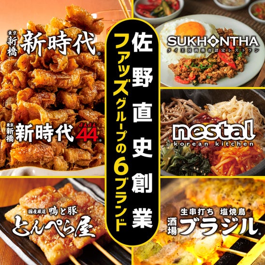 「新時代」、「新時代44」、「鴨と豚料理とんぺら屋」、「生串打ち塩焼鳥 酒場ブラジル」、「タイ王国政府認定レストラン スコンター」、「韓国料理ネスタル」の計6ブランドの飲食店を首都圏を中心に全国に120店舗を展開しています。