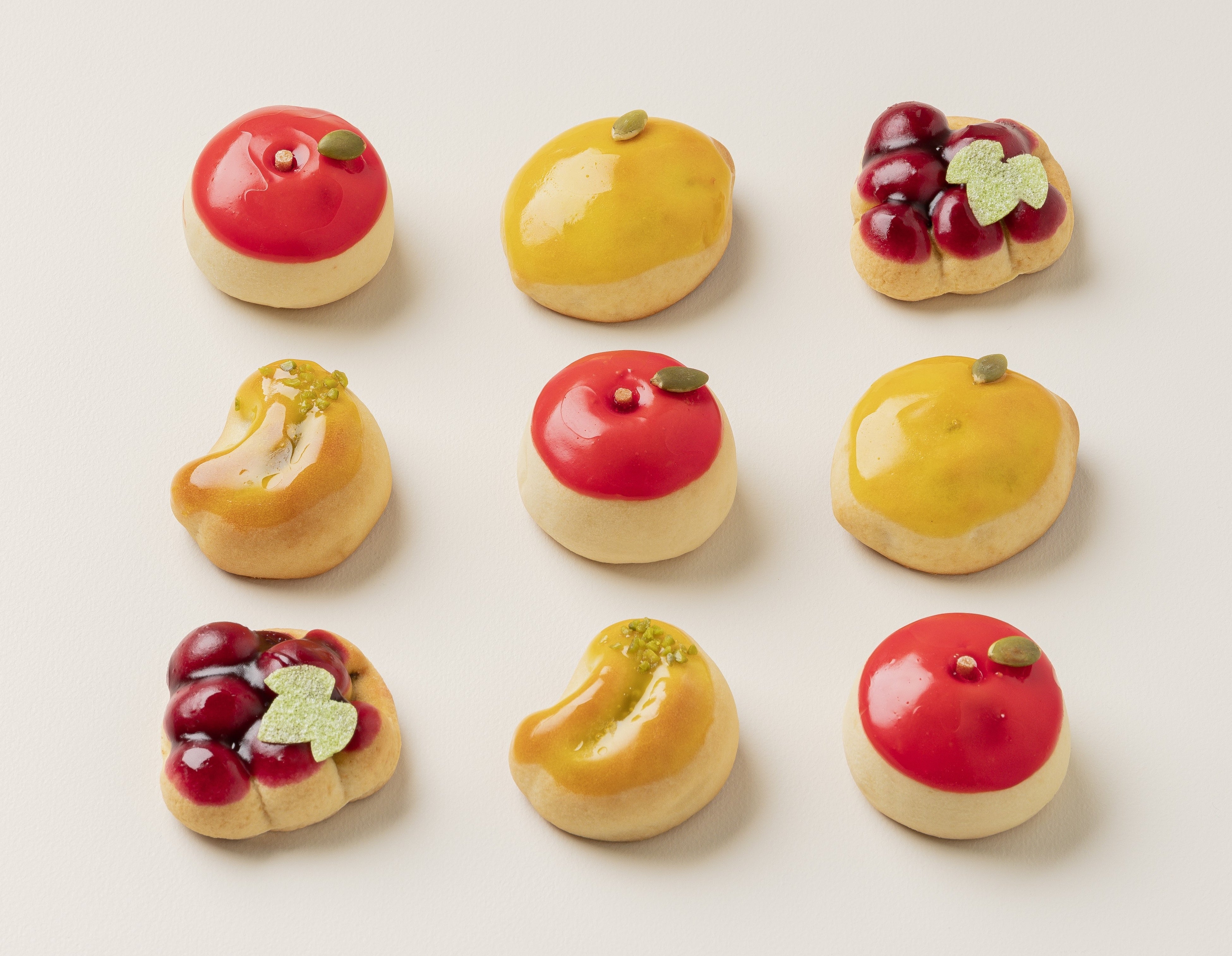 新商品発売前に第一弾~第四弾までの摘み果シリーズをご紹介いたします。色鮮やかなフルーツ饅頭は見た目も美しく、SNSでも「可愛い」や「美しい」、「お饅頭なのに果肉感が楽しめる」など様々なお声をお客様より頂戴しております。