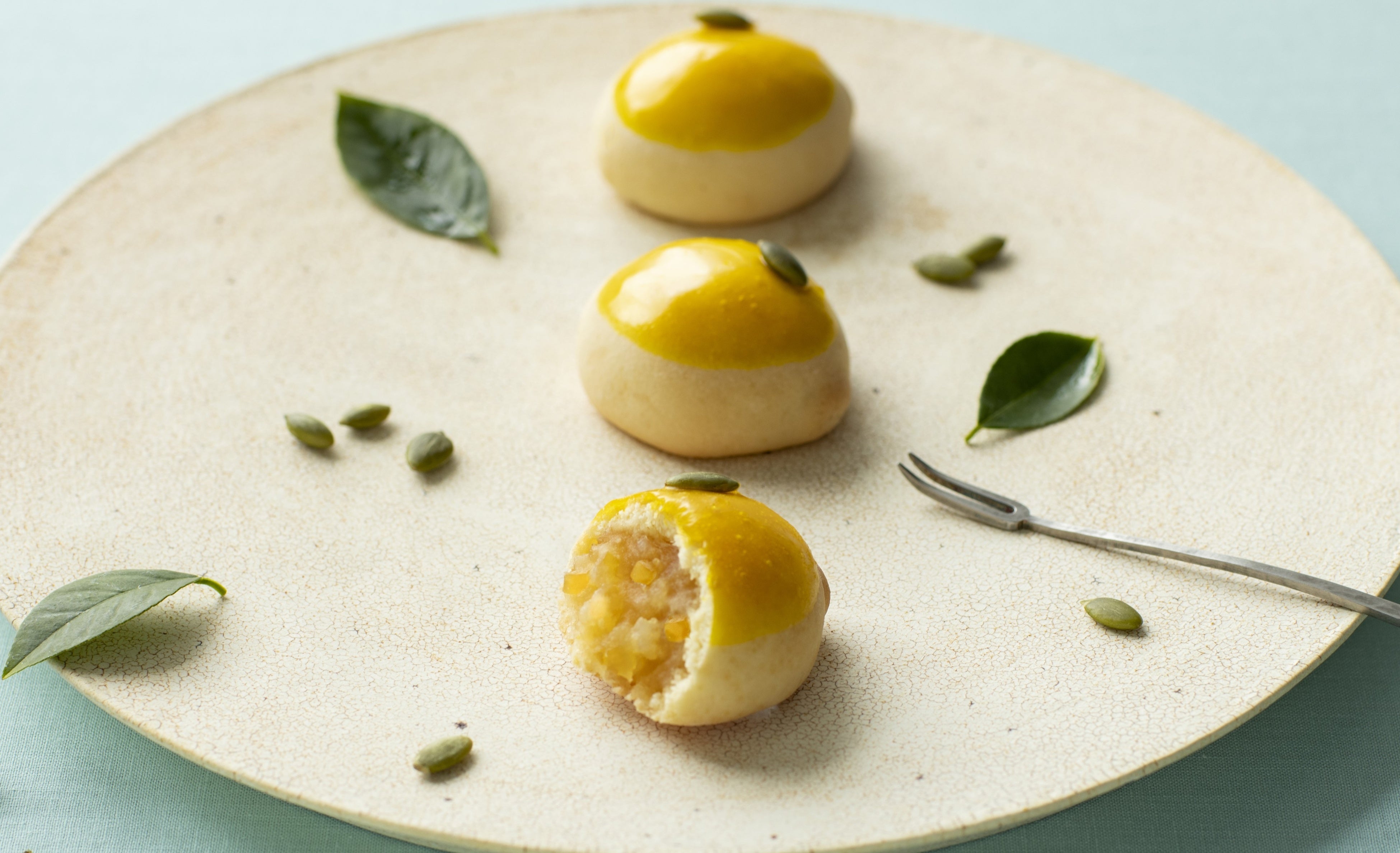 商品完成までに約2年を要し、まるでレモンな見た目のお饅頭が完成いたしました。白餡にシロップで長時間煮たレモンピールを合わせることで、レモンそのものの味わいを再現した、しっとりジューシーなオリジナルのレモン餡が完成しました。