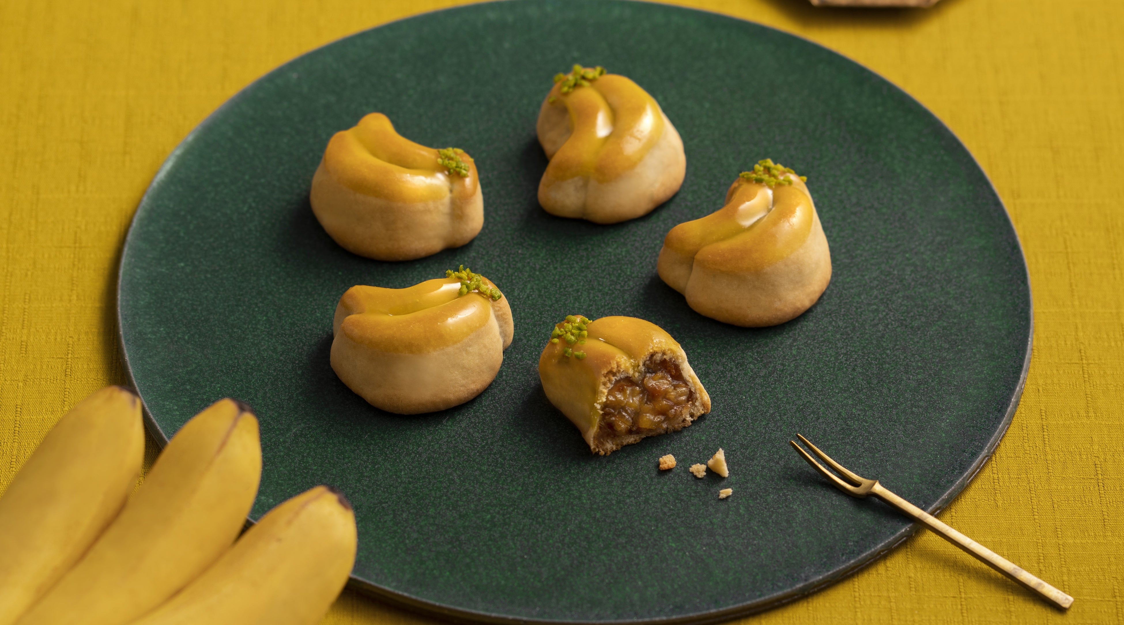 蜜漬けバナナを使用した濃厚なあんこを饅頭にしました。職人がバナナを餡に入れる最適なタイミングを見極め、バナナ特有のねばりを表現。