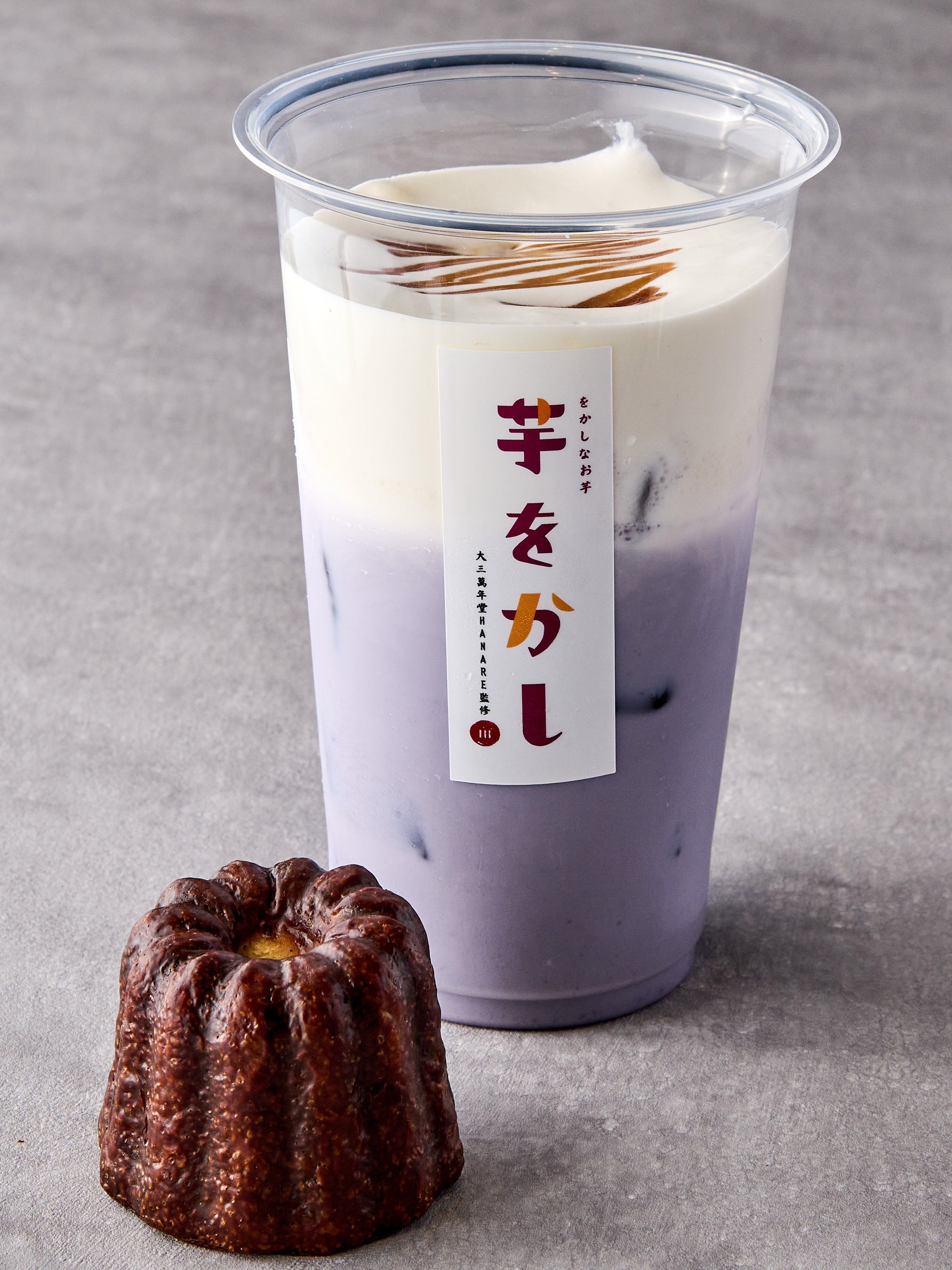 オープン当初から大人気の「飲む焼き芋」に焼き芋カヌレをのせた、その名も<ディップde焼き芋カヌレ>が数量限定で登場!