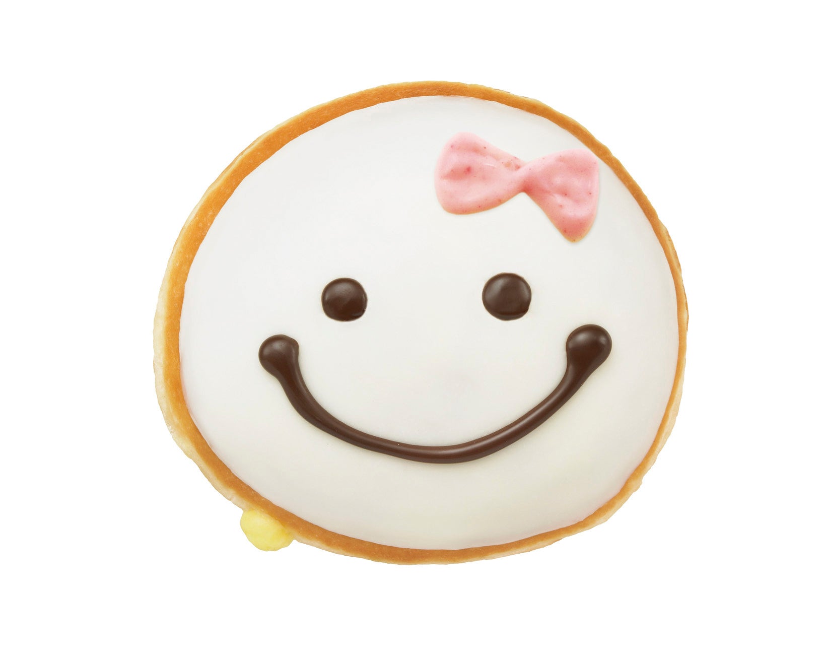 ママのスマイルがドーナツになりました。 ミルキーなホワイトチョコに描いたビターチョコの笑顔は、まるでやさしいママみたい♪ チャームポイントはストロベリーチョコでできたリボン。 中には、なめらかなバニラビーンズ入りカスタードクリームをつめこみました。 |