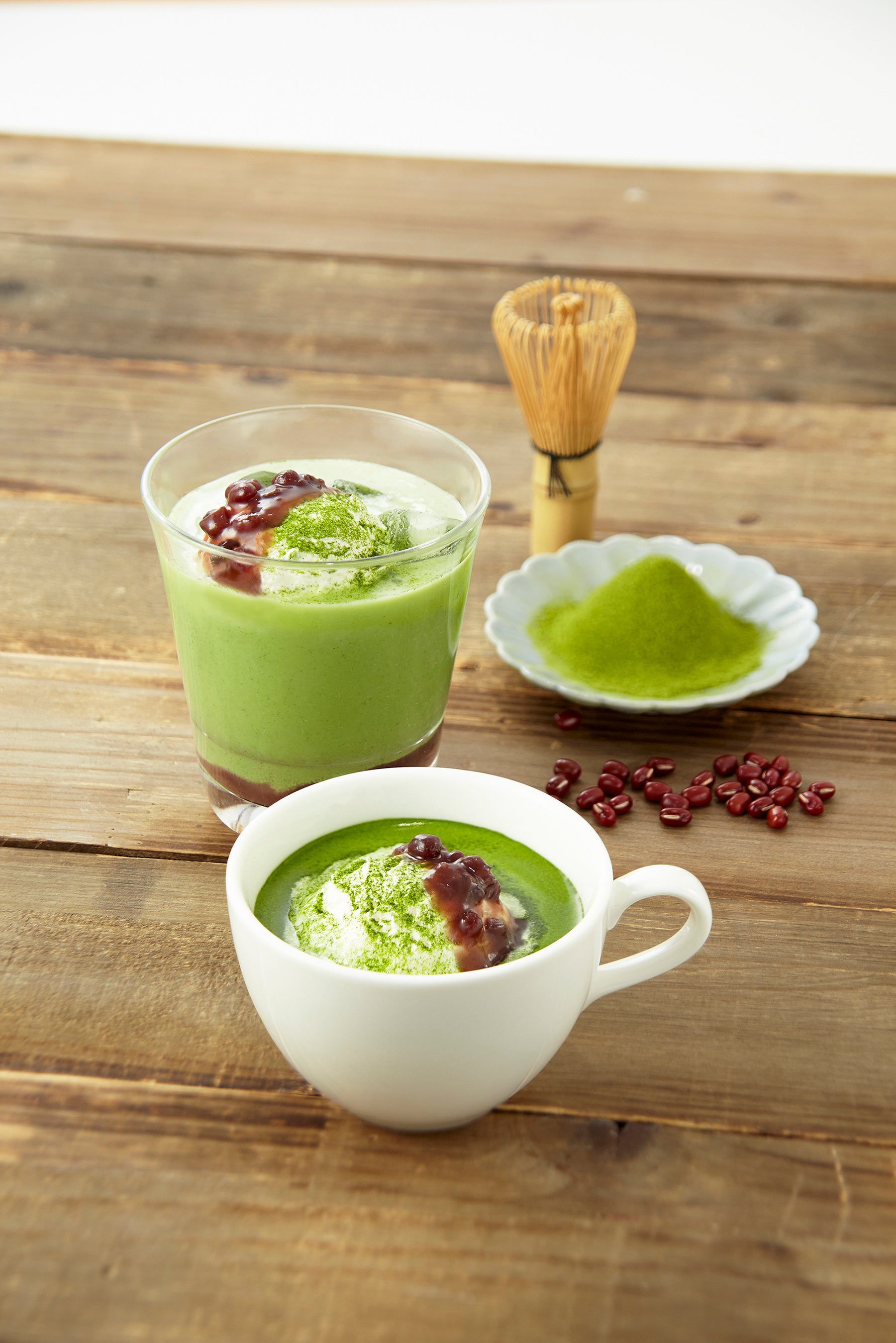 【宇治】抹茶の味がしっかり感じられる宇治抹茶ラテと小倉あんこのソースをトッピングしたドリンクに仕上げました。抹茶は、丸久小山園のものを使用しています。