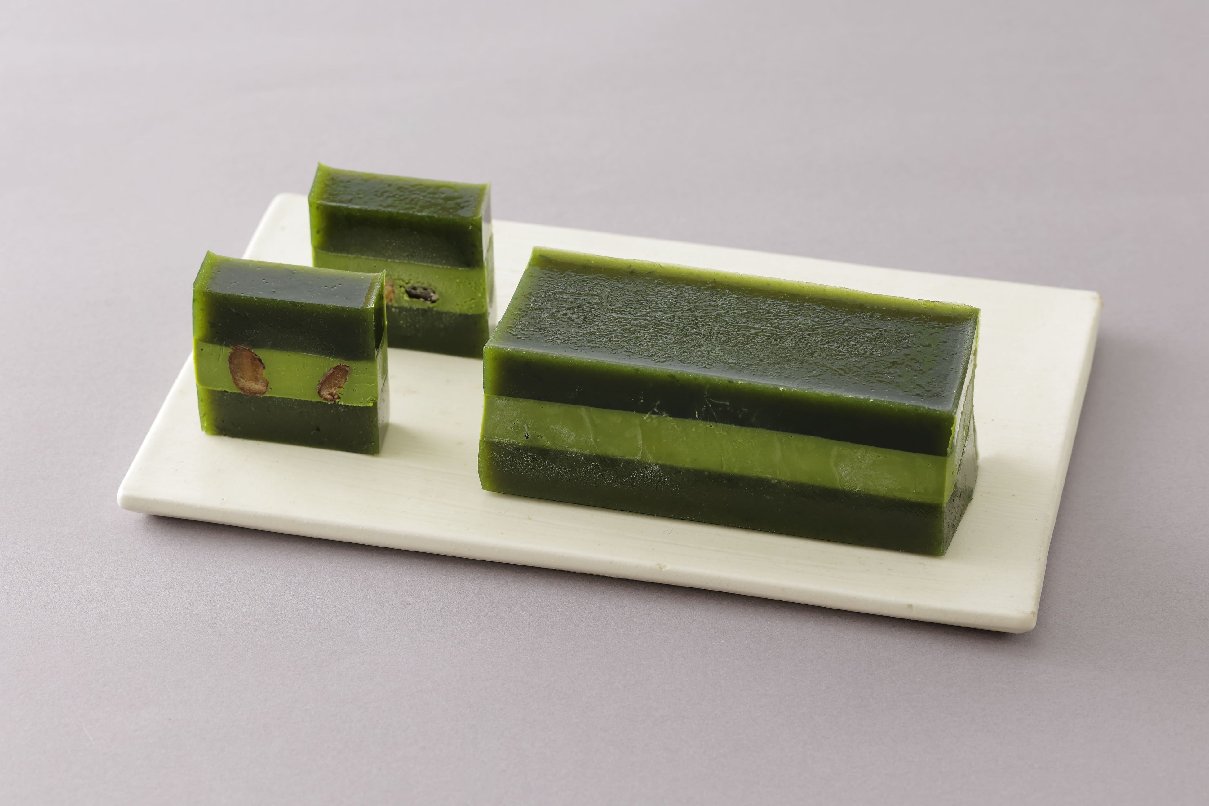 【狭山】狭山抹茶「武蔵のみどり」とよもぎを漬け込んだ水で作った白あんベースの抹茶羊羹で抹茶ガナッシュをサンドした、抹茶づくしの3層仕立てのショコラ羊羹。