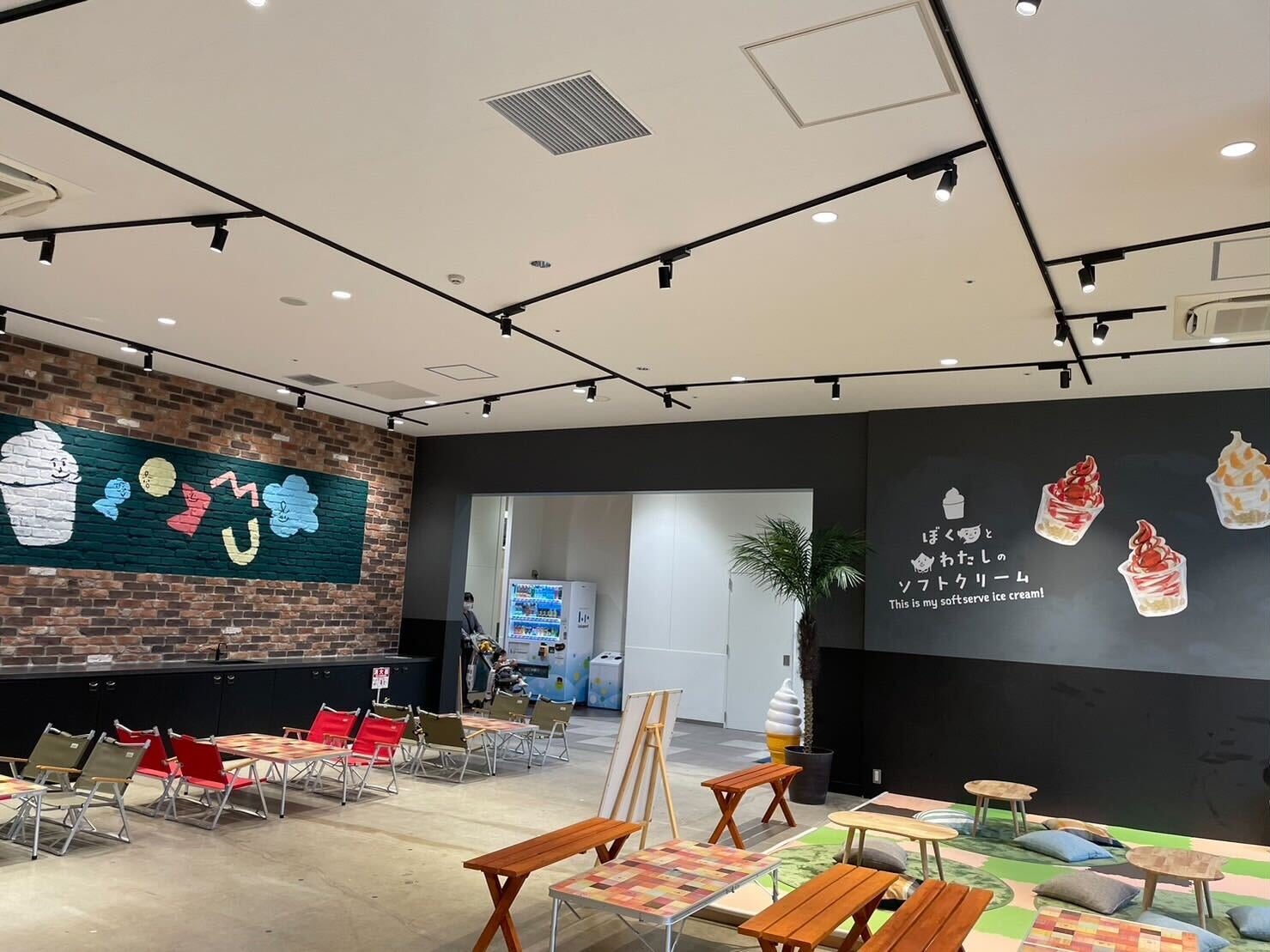 北海道生乳のソフトクリームをはじめ、数種類のこだわったアレンジソフトクリーム(いちごチョコ、チョコバナナ、モンブラン等)をご用意しております。ソフトドリンクや生ビールまでもご用意しておりますので、ぜひショッピング中の休憩がてらにお越しください♩