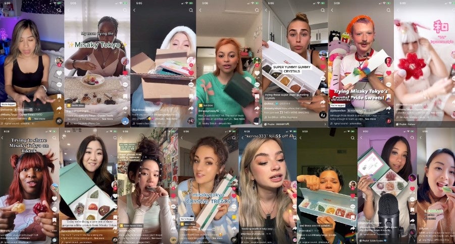 Misaky.TokyoブランドTikTokアカウント(@misaky.tokyo)を開設して以来、ブランド商品であるCrystal Treats(琥珀糖)の情報発信とファンとの交流の場として着実にフォロワー数を増やしてきました。弊社は社内クリエーター6名がインハウスで手掛けており、完全無広告でフォロワー100万人を突破した珍しい企業です。直近では世界で最も影響力のあるインフルエンサーの1人として知られる、キム・カーダシアンが手がけるフレグランスブランドとのコラボレーションを実現しました。また、コロナ下において、弊社はアジア・太平洋諸島系