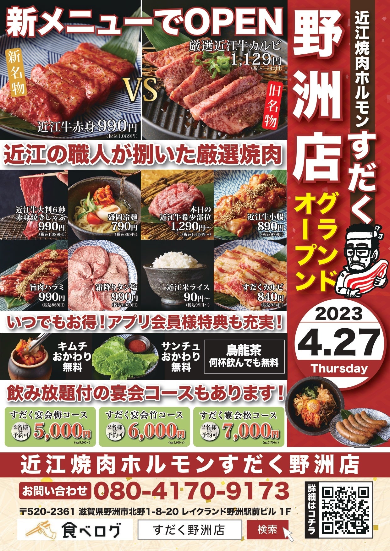 焼肉すだく野洲店が2023年4月27日(木)にグランドオープン!