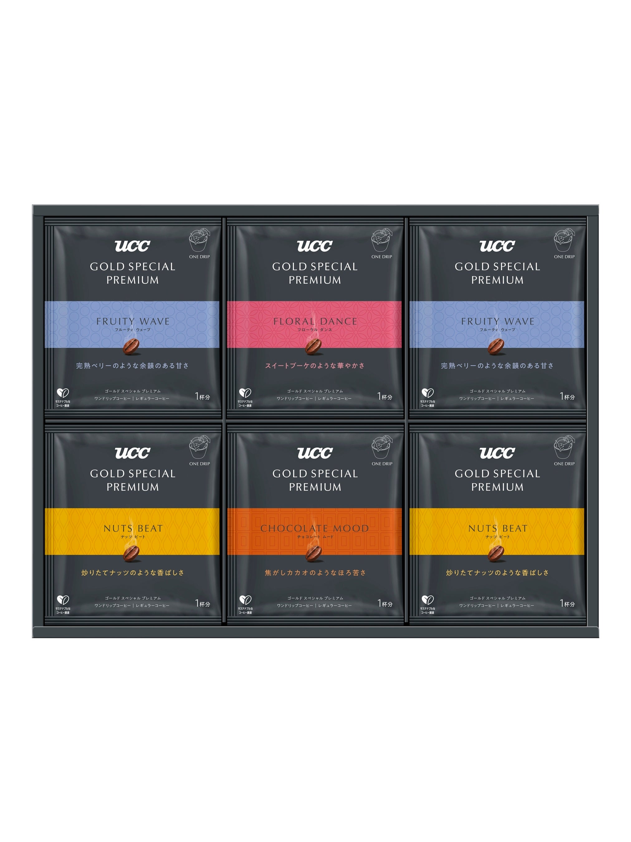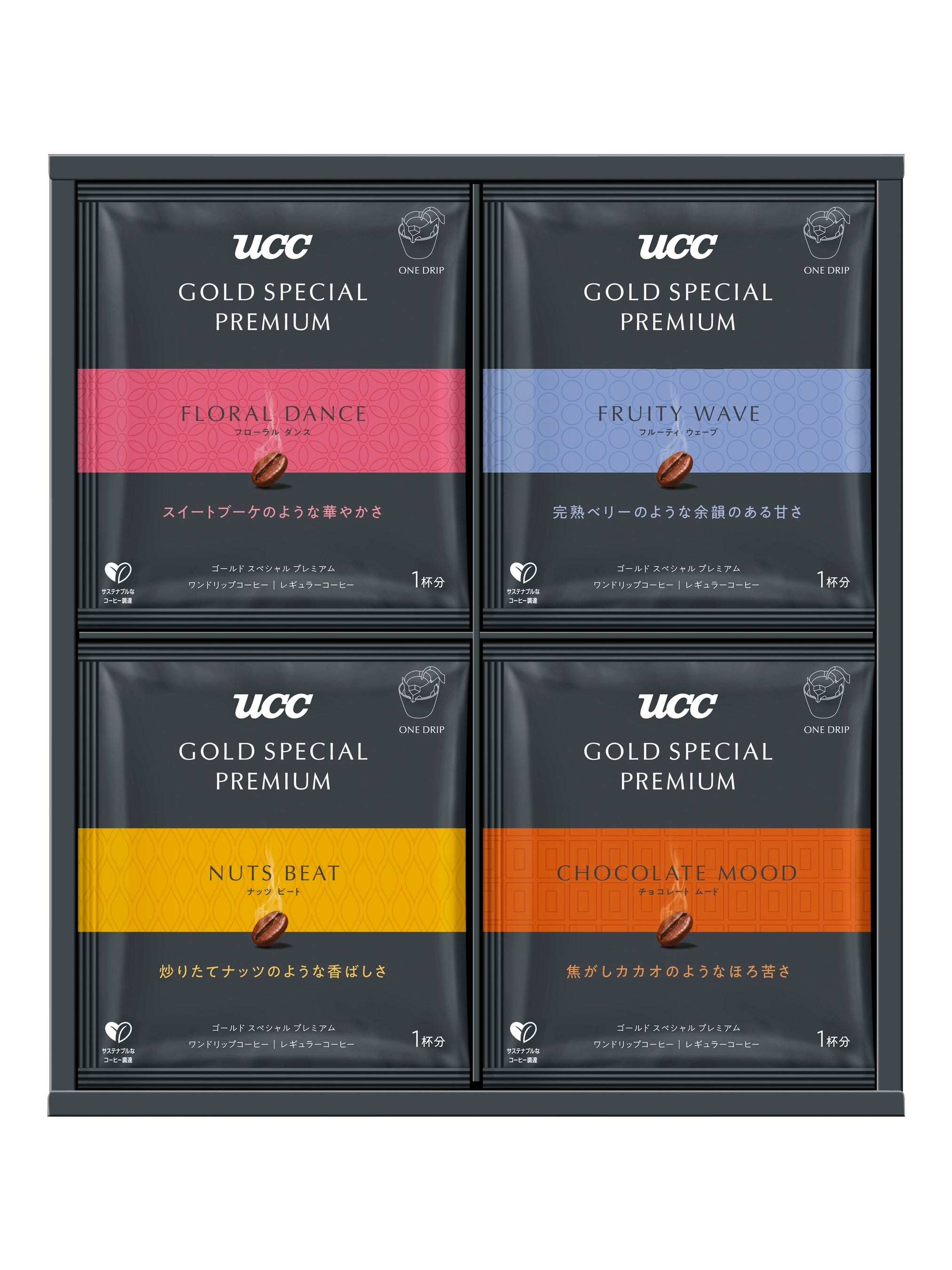 長年培ってきたUCCのブレンドや焙煎技術で、これまでとは違う味わいを実現している『UCC GOLD SPECIAL PREMIUM』。新たなコーヒーの楽しみ方を提案するプレミアムブランドのアソートギフトセットを3種類ご用意しました。ギフトならではのプレミアム高級感のある化粧箱とリーフレットを同梱しています。