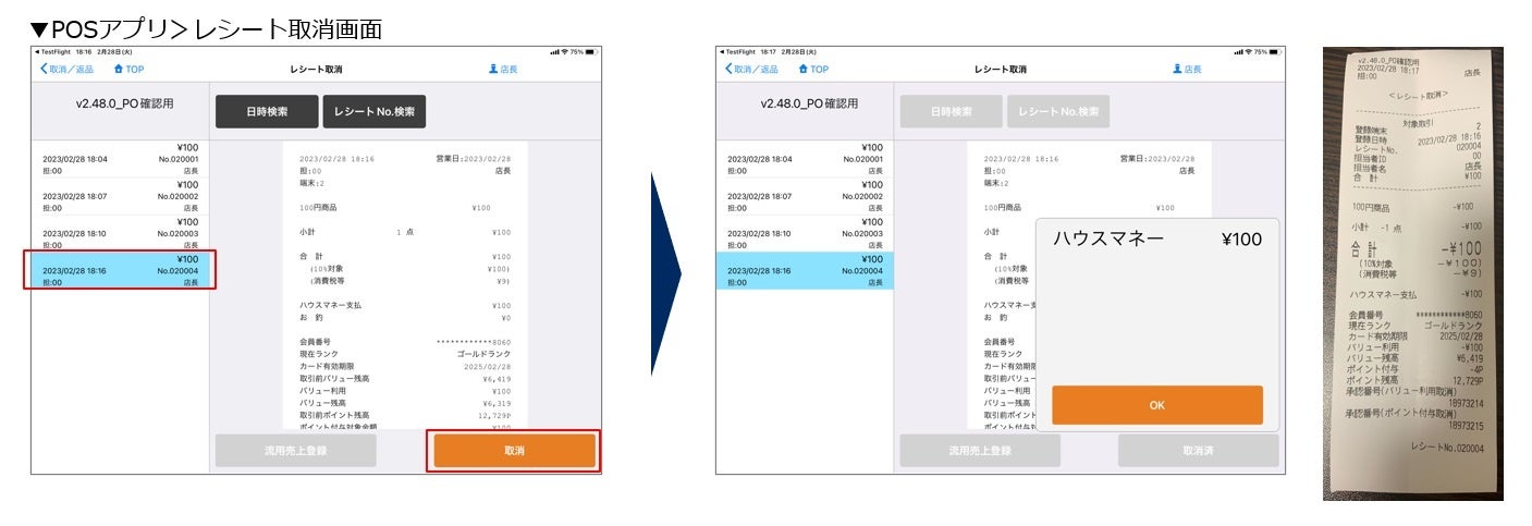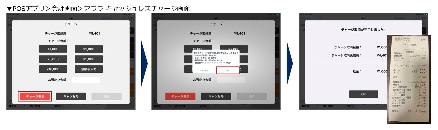 バリューデザイン社が提供するクラウド型独自 Pay(ハウス電子マネー)発行サービス「アララ キャッシュレス」との連携を強化しました。NECモバイルPOS経由で、ハウスマネーチャージと、支払い時の取消処理ができるようになります。