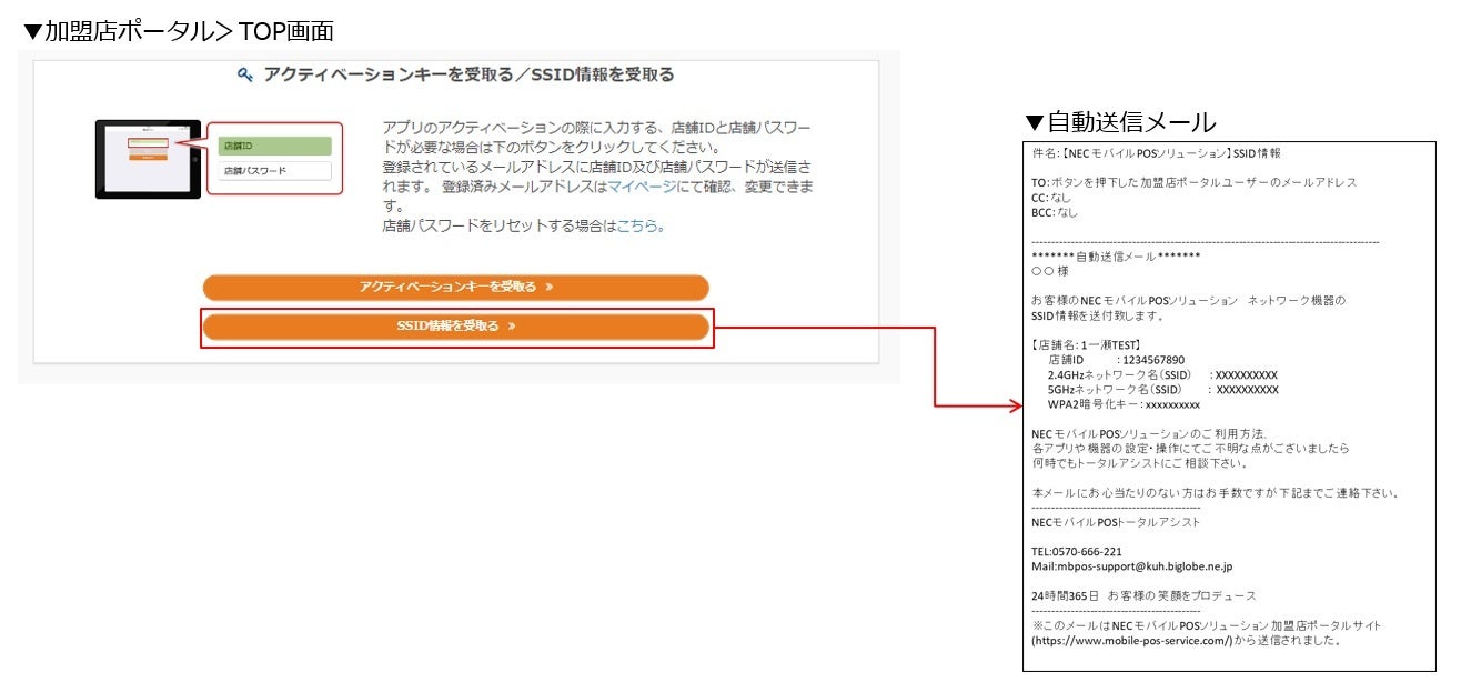 店舗に納品されているアクセスポイントのSSID、パスワード情報を取得できるようになりました。Welcomeシートを紛失してしまった際などにユーザ様自身でSSID情報を確認することができます。