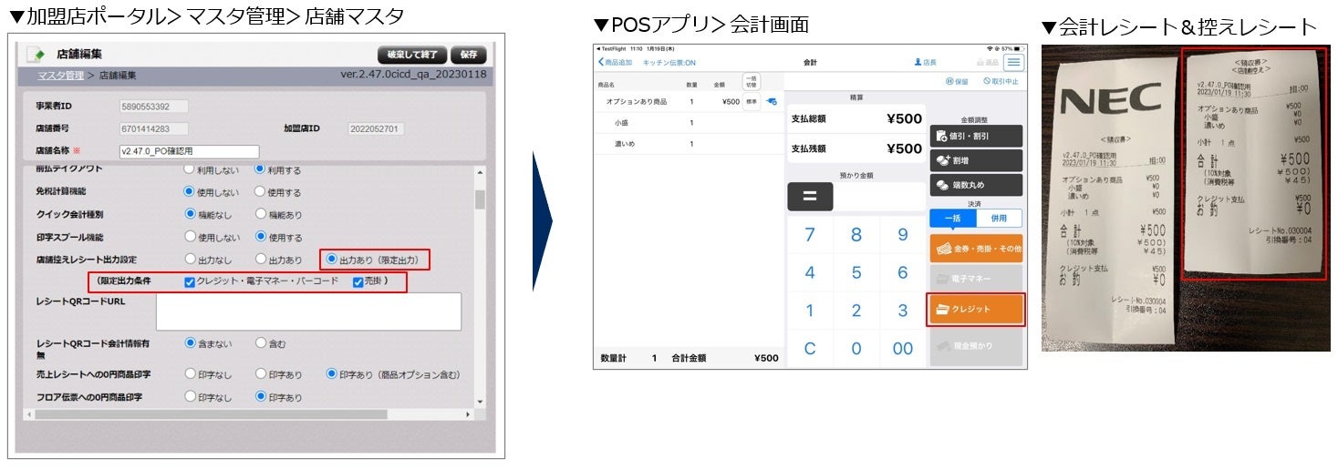 新機能2:0円商品オプション明細会計画面表示とレシート印字