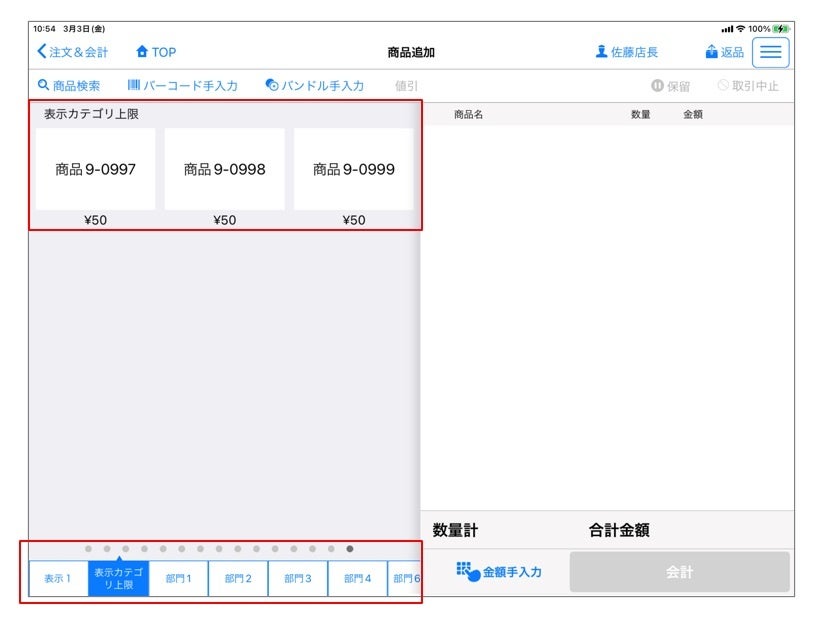 これまでは商品のタイル表示(12個)を使用する際、1部門あたり162商品以下の登録までとなっていましたが、表示部門登録商品数の件数に関わらず商品のタイル表示が使えるようになりました。