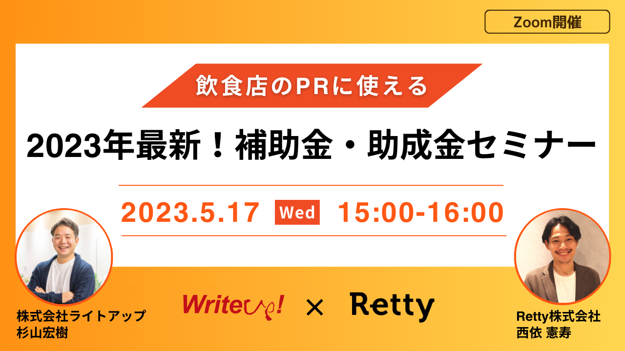 「飲食店のPRに使える 2023年最新!補助金・助成金セミナー」