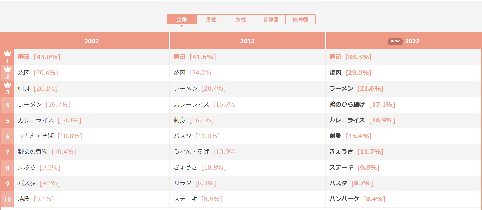 周囲を海に囲まれ恵まれた海洋環境を有するにも関わらず、日本では2001年をピークに魚介類の消費が減少し続けています。一方で、日本人が好きな食べ物の1位は20年間、「寿司」が不動の地位を守っています。
