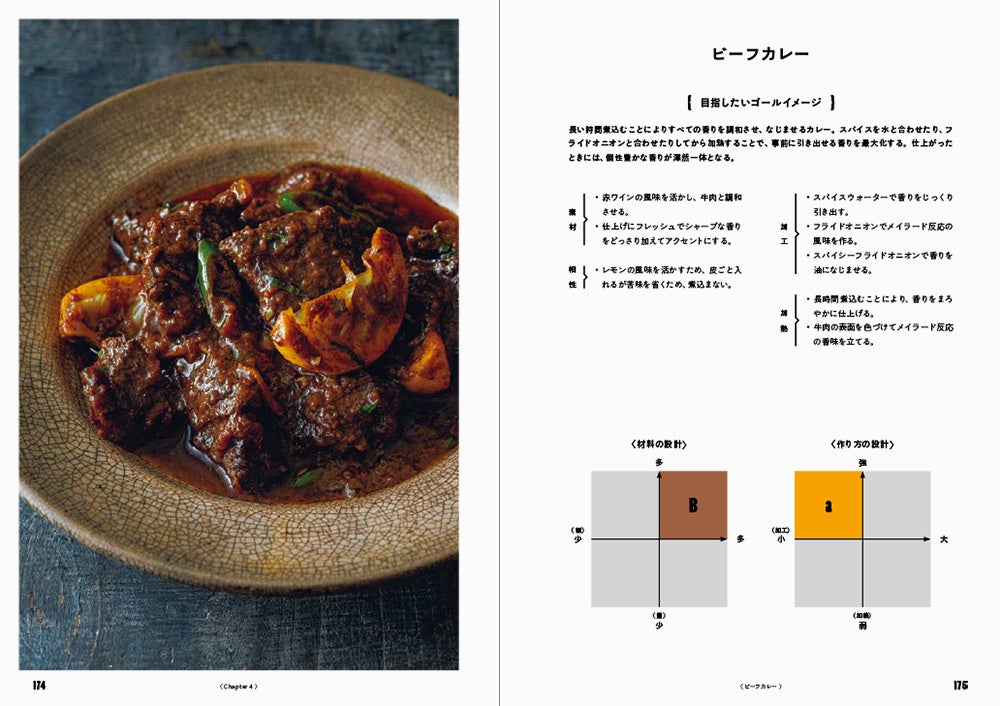香りを駆使してカレーを作る / 【材料】の設計は、“香りの存在感”が鍵。 / 【作り方】の設計は、“香りの均質感”が鍵。 / キーマカレー / アサリのカレー / ペッパーチキンカレー / マスタードチキンカレー / セサミチキンカレー / ベジタブルカレー / グリーンポテトカレー / ラムカレー / ビーフカレー
