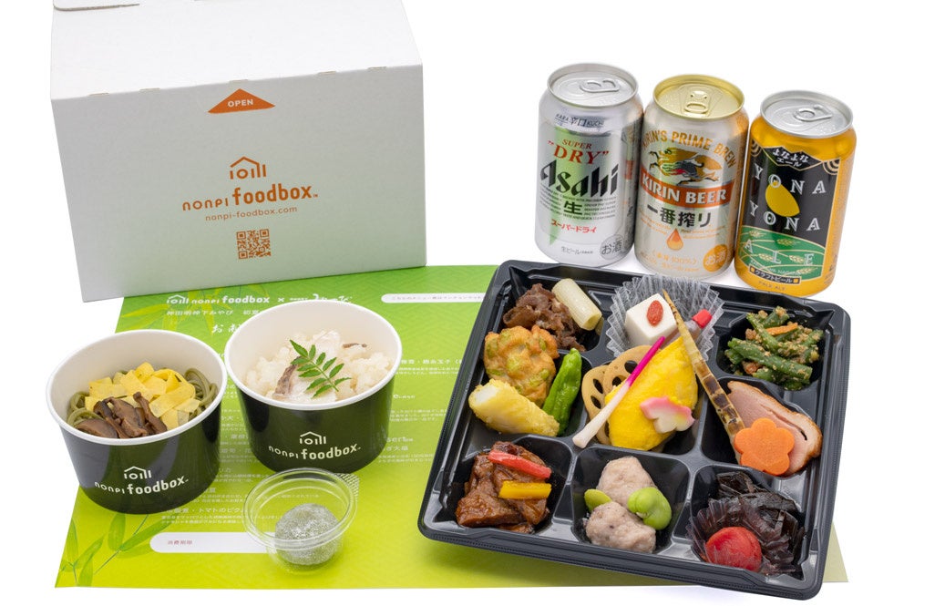 nonpi foodbox™は、対面、オンライン、ハイブリッド、様々な形式の集まりで手軽に食事手配ができるデリバリーサービスで、1箱に料理と飲み物を詰めて全国にお届けします。