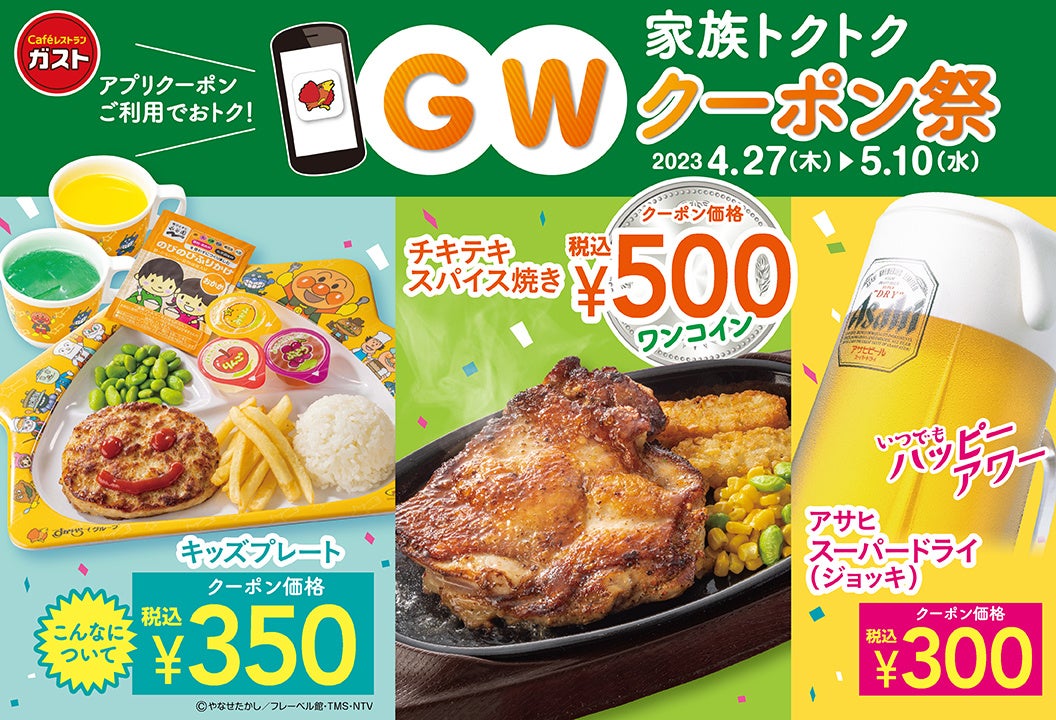 【ポイント①】 GW中は3品が各税込500円!アプリで最大税込400円OFFクーポンGET! 【ポイント②】 GWのご家族での外食は賢くお得に!キッズプレート2品が各税込350円 【ポイント③】 GW中は終日ハッピーアワー価格!ビールは税込300円、ワインは税込100円に! |