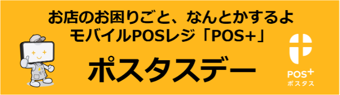 「お店のお困りごと、なんとかするよ モバイルPOSレジ「POS+」 ポスタスデー」 |