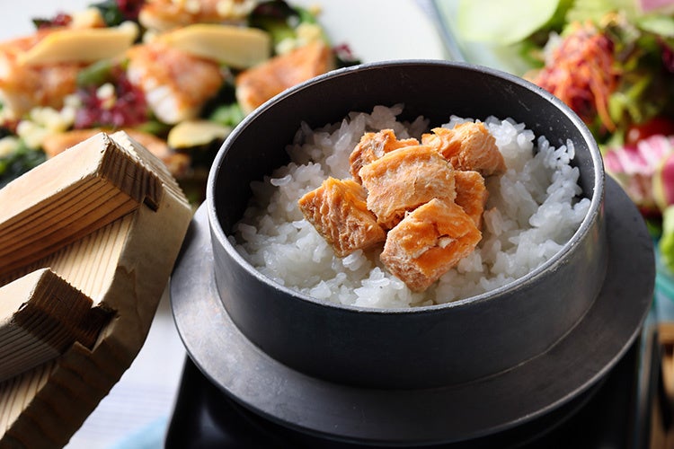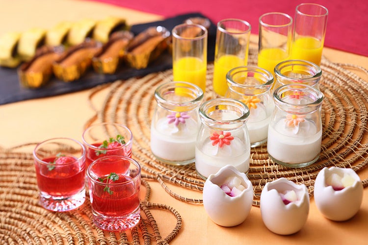 琵琶湖の恵み「ビワマス」を使った炊き込みご飯「あめのいお御飯」はレストラン ザ・ガーデン ディナービュッフェの定番メニューのひとつ。大津市比良の紫蘇ジュース「ヒラペリラ」を使ったゼリーなど、清涼感あふれるスイーツもご用意。また、ハンバーグ、チキンナゲット、グラタンなどお子様に人気のキッズメニューで、育ち盛りのお子様もお腹いっぱいお楽しみいただけます。