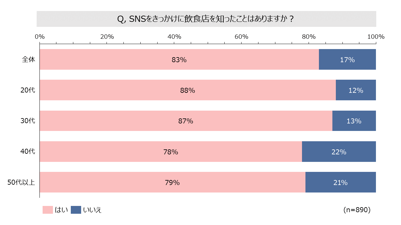 1. SNSをきっかけに飲食店を知ったことがある83%、きっかけはインスタグラム