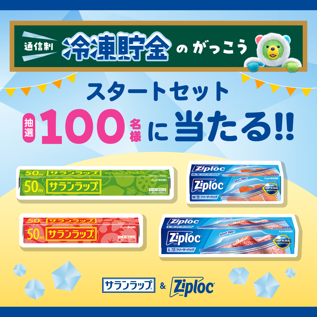 「冷凍貯金のがっこう」にアプリから入学していただいた方の中から抽選で100名様に、「冷凍貯金」がすぐに始められる「冷凍貯金」スタートセットをプレゼントするキャンペーンを実施中です。