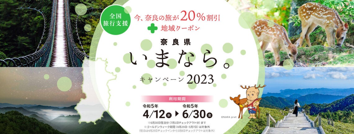 奈良県の旅行支援「いまなら。キャンペーン」を適用可能。