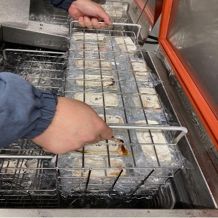 しかし液体凍結では-30℃の液体で空気冷凍より圧倒的に速く凍らせることができるので細胞破壊を最小限に抑えることができます。その結果食品へのダメージを抑え、栄養や旨味を損なうことなく保存できるので凍結前の美味しさそのままにお召し上がり頂けます。
