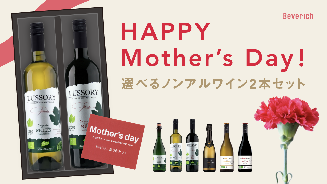 Beverichでは、母の日にぴったりな華やかで特別感のあるお酒をピックアップしたギフトボックスをご用意いたしました。お酒が苦手な方、健康を意識している方などにもお楽しみいただける内容となっておりますので、日頃の感謝の気持ちを込めて今年はノンアルコールワインを贈りませんか。