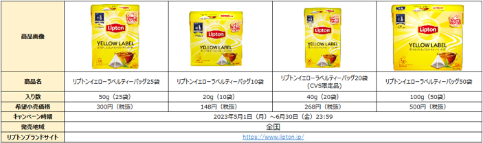 「リプトンの日」を記念して、リプトンの大人気製品であるリプトン イエローラベル製品をご購入の方に、抽選で素敵なプレゼントが当たるキャンペーンを実施いたします。リプトンではたった1杯の紅茶でも、ちょっとした気分転換や前向きな気持ちを持ち直すきっかけとなり、人と人との繋がりに意識を向けられるようになると信じています。「5月10日はリプトンの日 プレゼントキャンペーン」も、リプトン イエローラベルとともに人々が大切なつながりに気づくきっかけをつくる取り組みとして実施いたします。