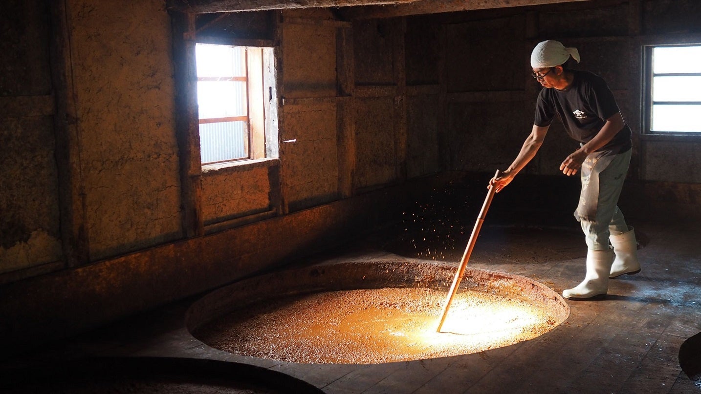 発酵環境は人工的な温度コントロールでなく、四季の温度変化による「天然醸造」。寒い時期に仕込み作業が行われ、夏にはぷくぷくと発酵がはじまります。春夏秋冬によって、木桶はその表情を変えながら醤油に適した環境をつくります。湿気が多ければ吸収し、寒い時には保温するように、いつも表情が異なります。
