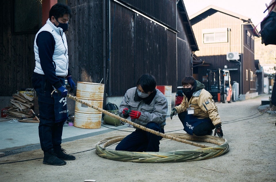 このままでは日本の伝統文化が消えてしまうと感じたヤマロク醤油の山本康夫は桶屋で修業し自ら桶づくりをすることに。さらに、木桶仕込みをしている全国の醤油蔵などに声をかけ、同じ志を持つ人々が企業や業界の枠を越えて集結。毎年1月に小豆島で新桶づくりをスタートしました。