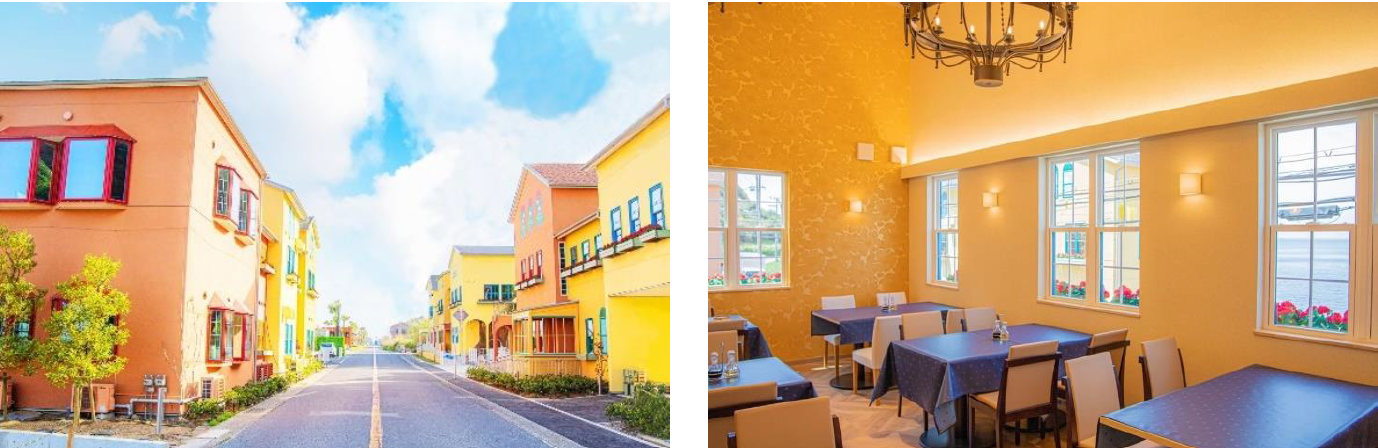 淡路島西海岸の海沿いに、まるでヨーロッパのようなカラフルな街並みを再現した建物が連なり、カフェやレストラン、マルシェ、世界の雑貨屋などの複数の専門店が同居するシーサイドモール