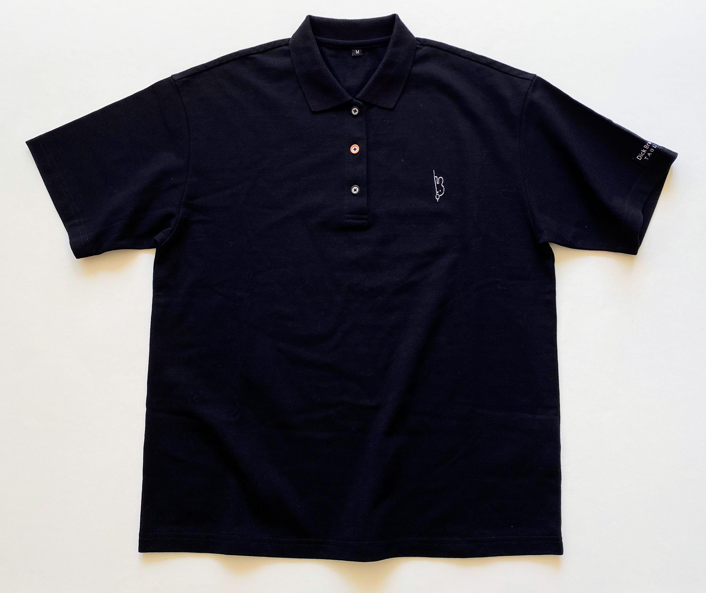 胸元にミッフィーの刺しゅうがポイントの黒の半袖ポロシャツはこれからの季節にぴったり。袖口のネームロゴがおしゃれで少しゆったりめにもジャストサイズにも着ていただけるように、メンズ、レディース共にサイズバリエーションを3サイズ展開にしています。当日はスタッフも着用します。