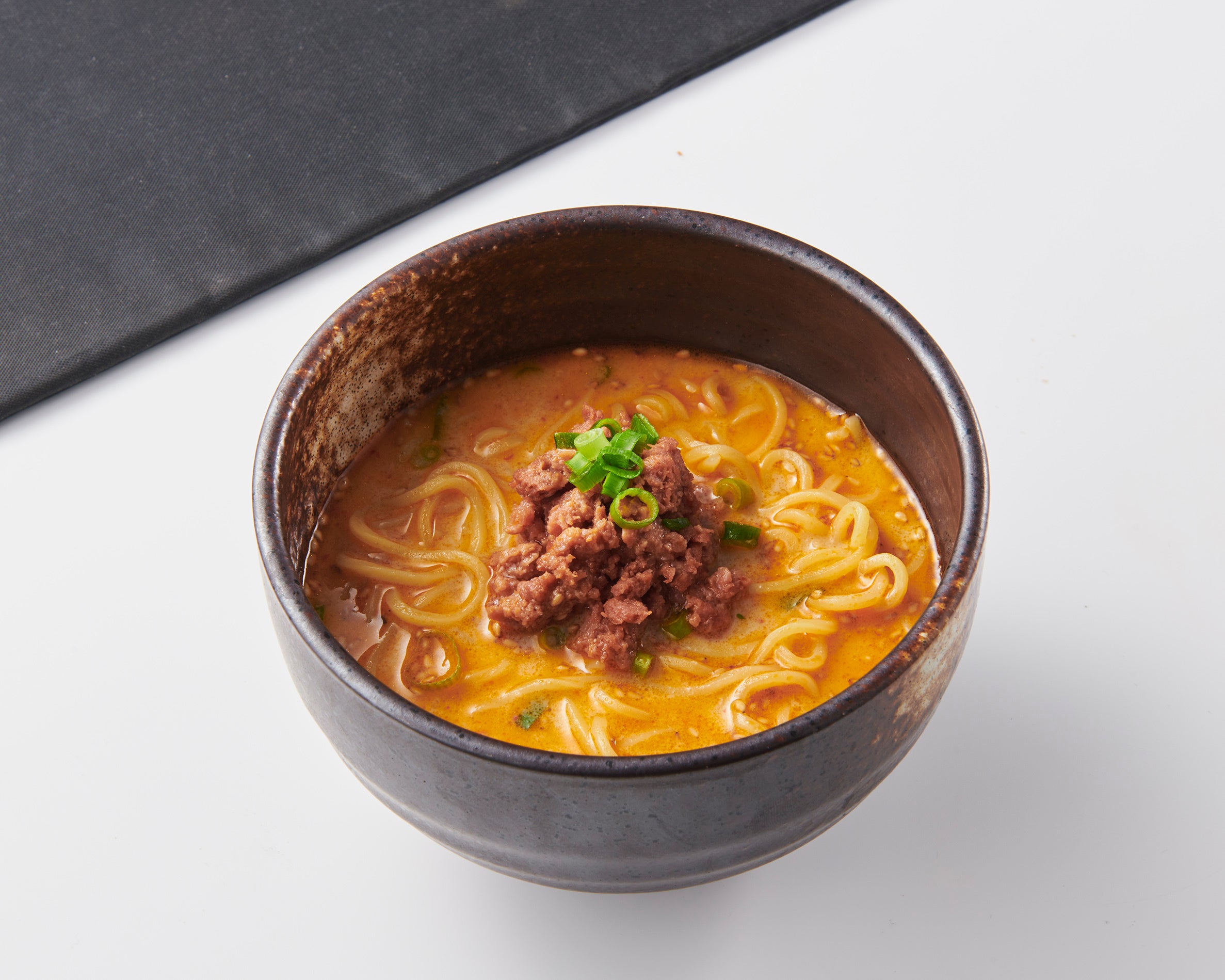 v2mince(ミンチ)を使用し、豆乳ベースのスープで仕上げたギルティフリーな坦々麺。とてもヘルシー、でも食べ応え抜群で大満足の一品です。※お肉は代替原料として植物性の原料を使用しています。