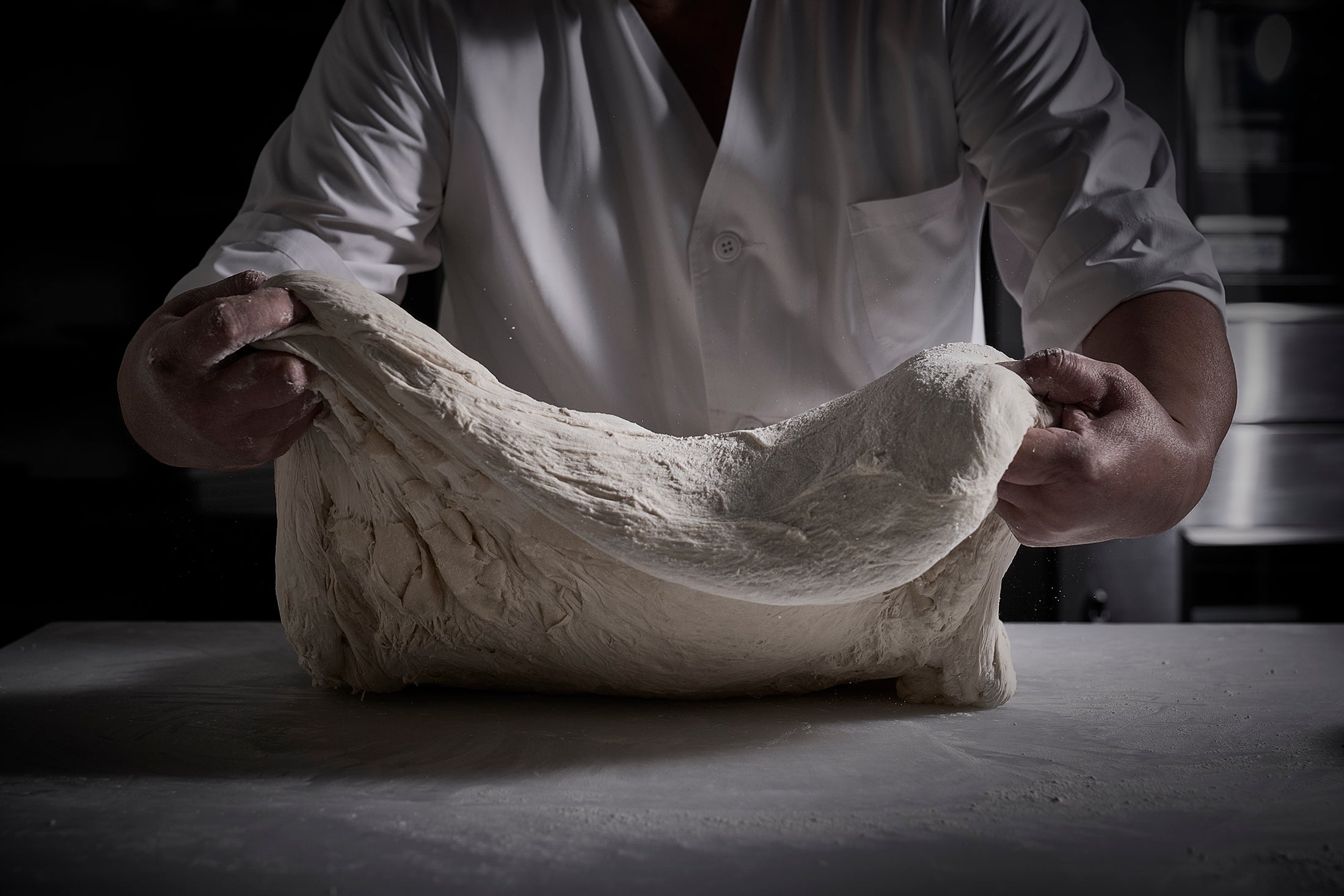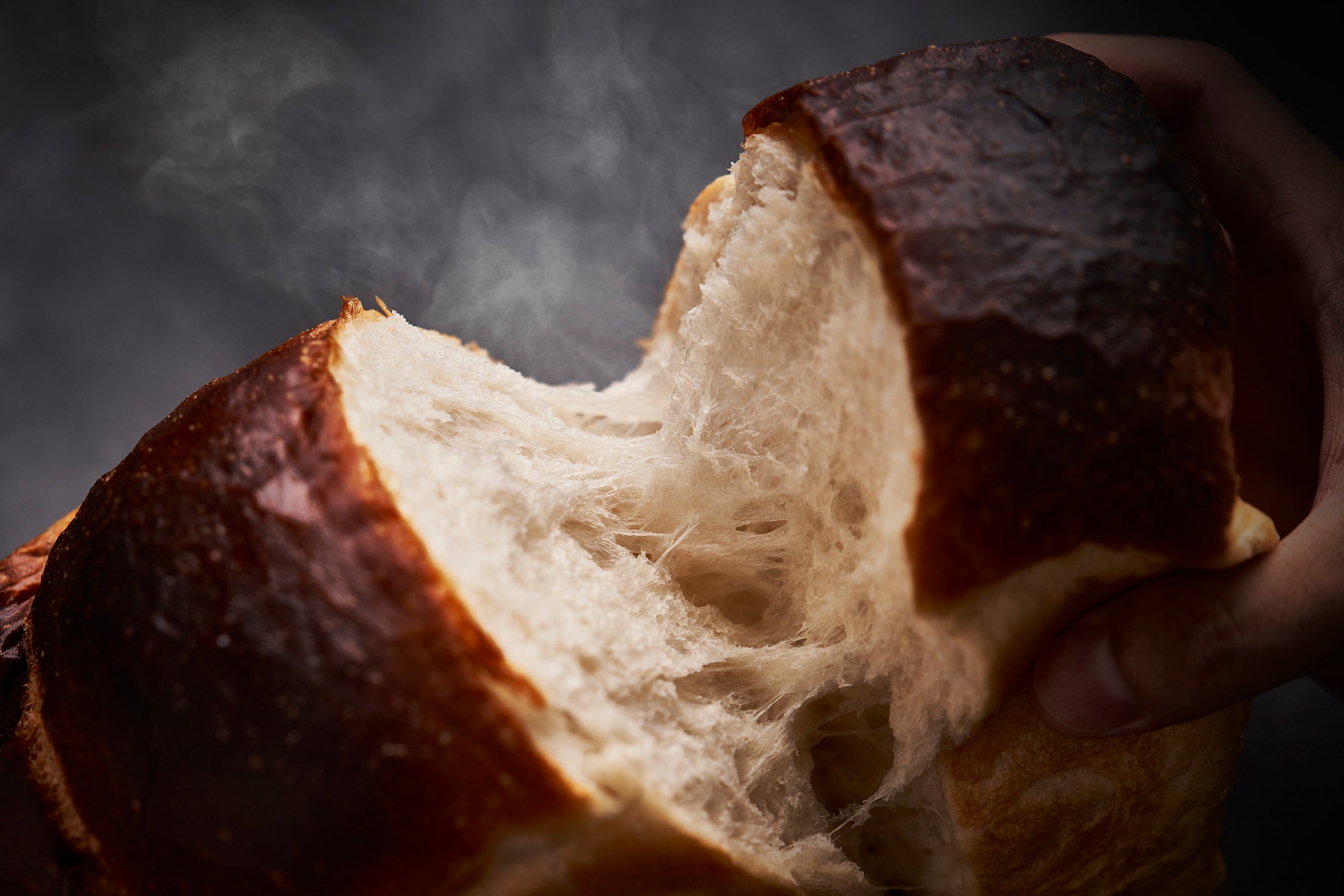 小麦本来の味をストレートに楽しめるように甘さを完全になくし、油脂類も一切カット。焼くと外側はバケットのようなサクサク感。なのに中身は切れない程のねっとりもちもち感。冷蔵低温長時間(48 時間)熟成・湯種製法により実現出来たとの事。