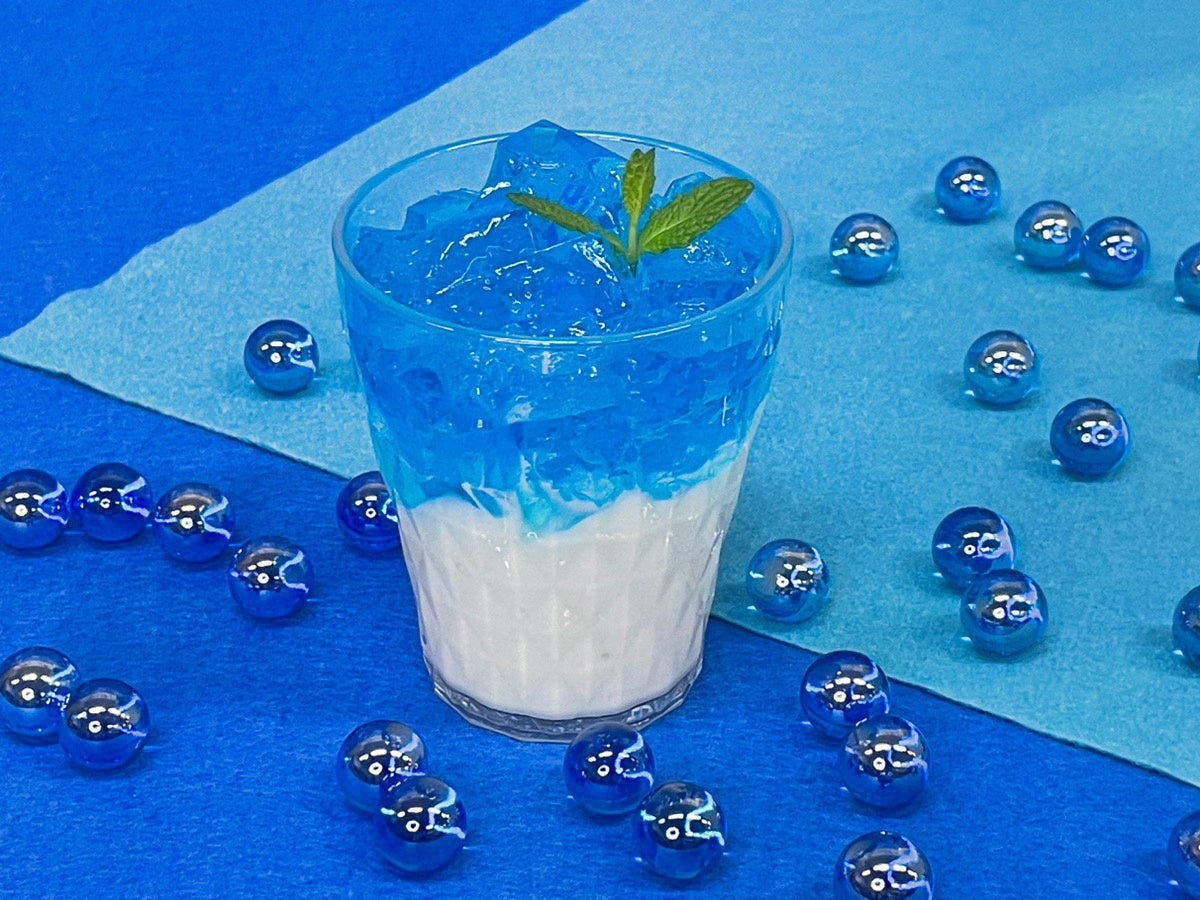 ミルクの風味が特徴のプリンは、とろけるような食感がたまりません。そして、プリンの上には鮮やかなブルーで、サイダー味のもちもちのゼリーをトッピング。プリンとの相性抜群のゼリーの爽やかな味わいが口いっぱいに広がります。