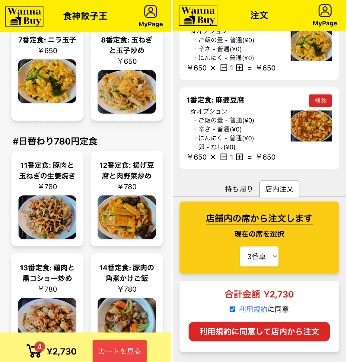 「WannaBuy」は、使いやすいインターフェースを備え、顧客は手軽にテイクアウトの予約や店内での注文ができます。さらに、アプリ内でのプロモーションやクーポンの発行が可能で、店舗は集客効果を最大化できます。
