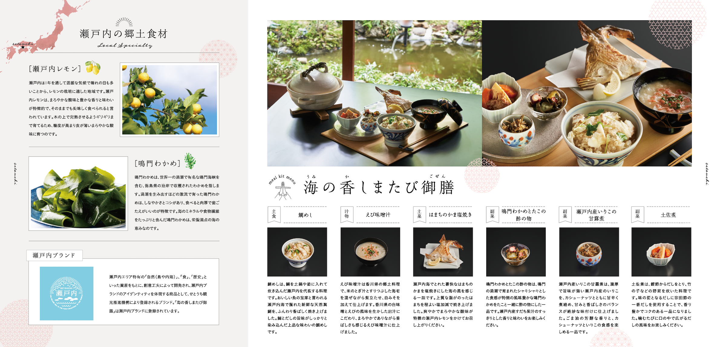 「日本を愉しむ」をテーマに日本各地のご当地料理が愉しめるミールキット『咲耶』では、お食事を愉しむだけではなく自宅で旅するような体験をお愉しみいただくため、各商品に特製のリーフレットを同梱しております。