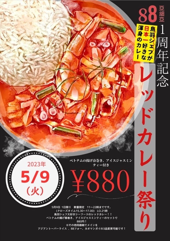 88Asiaの1周年記念レッドカレー祭りにぜひご参加ください。