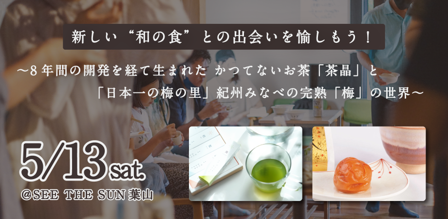 SEE THE SUNが神奈川県葉山のサテライトスタジオで主催する、アワーテラスの「新しい和の食との出会いを愉しもう!」イベント5月13日(土)開催に紀州南高梅干しの作り手として参加させていただくことになりました。