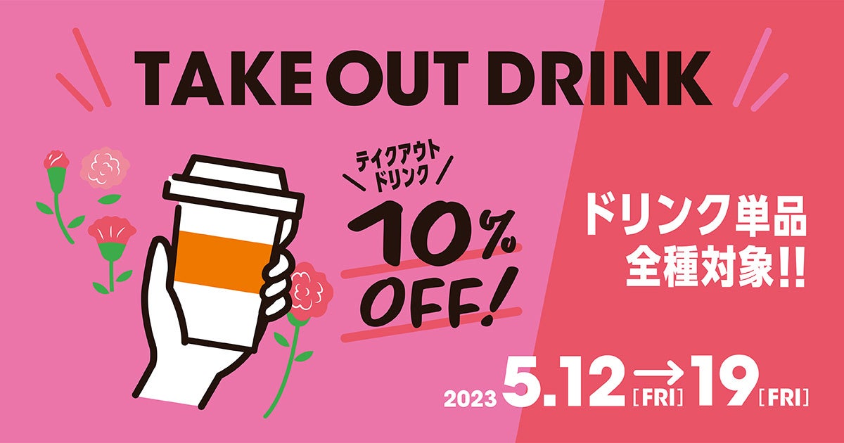 ■内 容 : テイクアウトドリンク単品を10%OFF