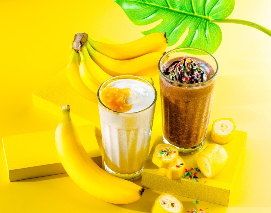 ドリンク2種類は“バナナ”に着目し、「フレッシュ!」「生バナナ」「まるごと」の3要素をキーに完成したスムージーです。