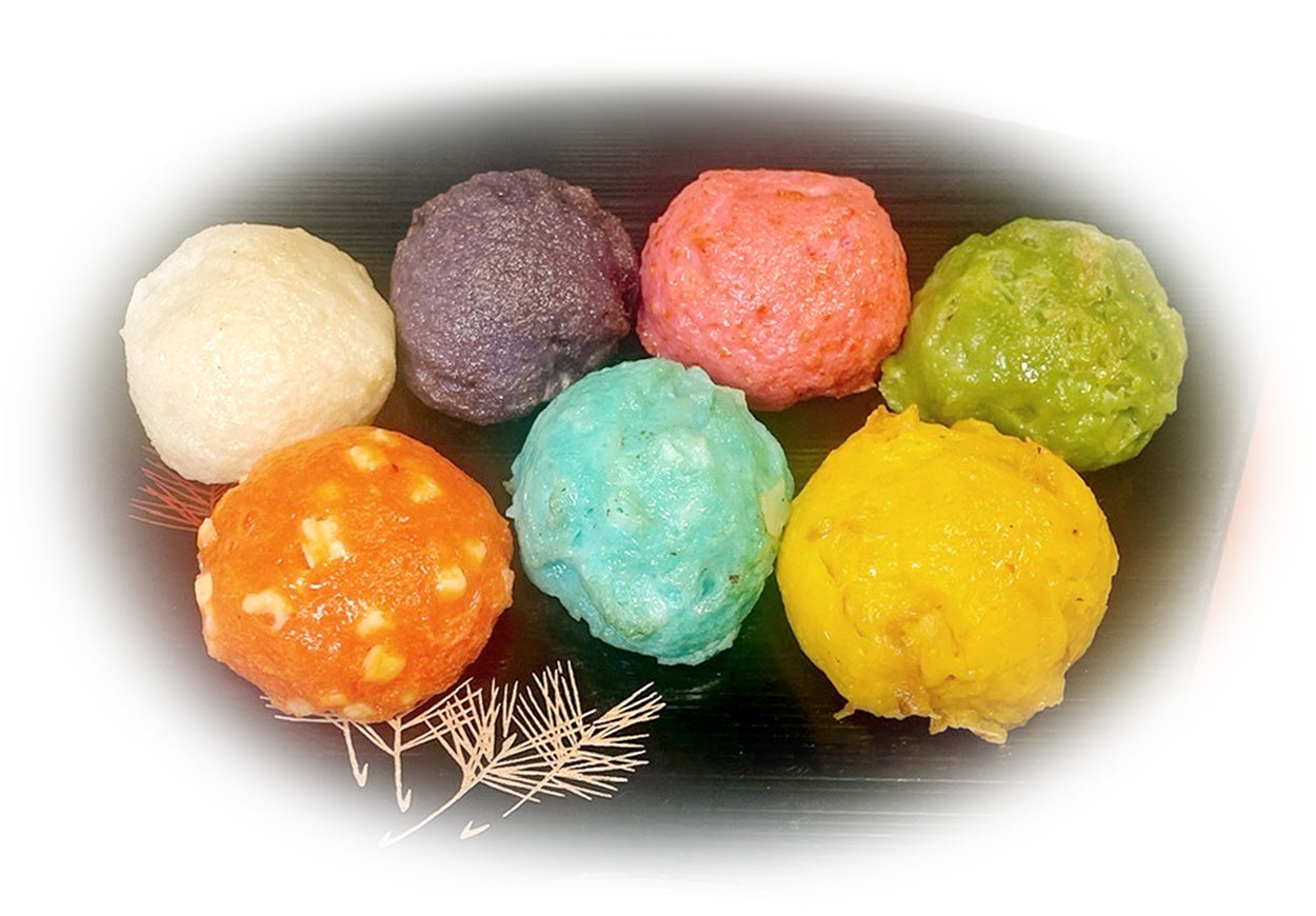 プレーン・玉ねぎ・チーズ・エビ・ホタテ・軟骨・唐辛子の7種の味を練り込んだ7色の練り立てすり身で作り上げる「N(練り)7」を、揚げたてでご提供いたします。