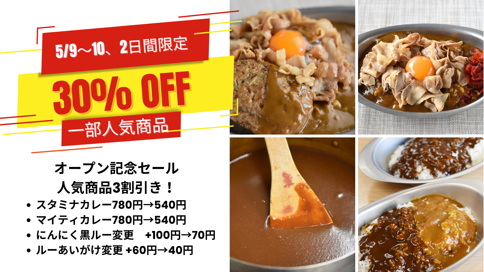 5月9日〜10日は1号店で人気の下記商品のみを取り扱い全て3割引にて提供いたします。