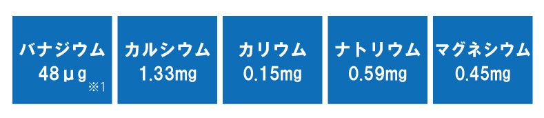 ※1:バナジウムの数値は1Lあたり。他成分の数値は100mLあたり。(株)山梨県環境科学検査センター調べ。