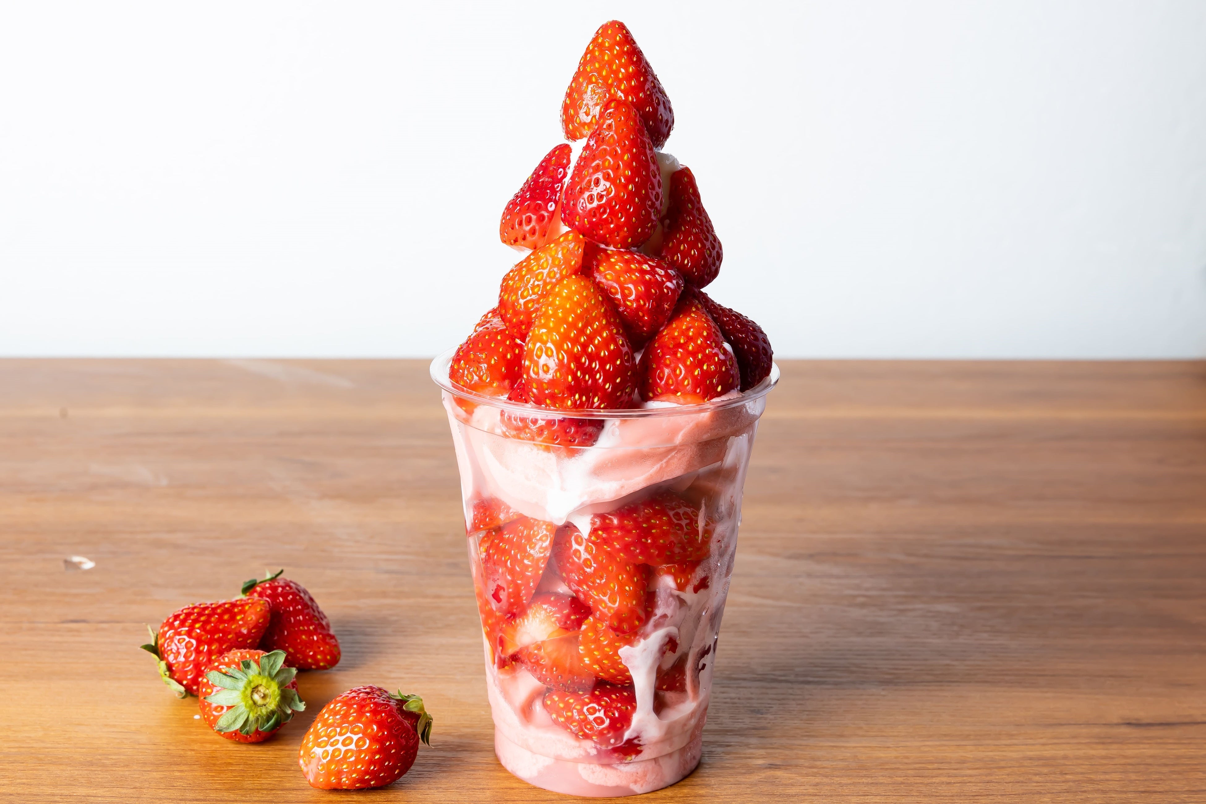 SOYBASEを使用したオリジナルソフトクリームに旬のイチゴをトッピング!