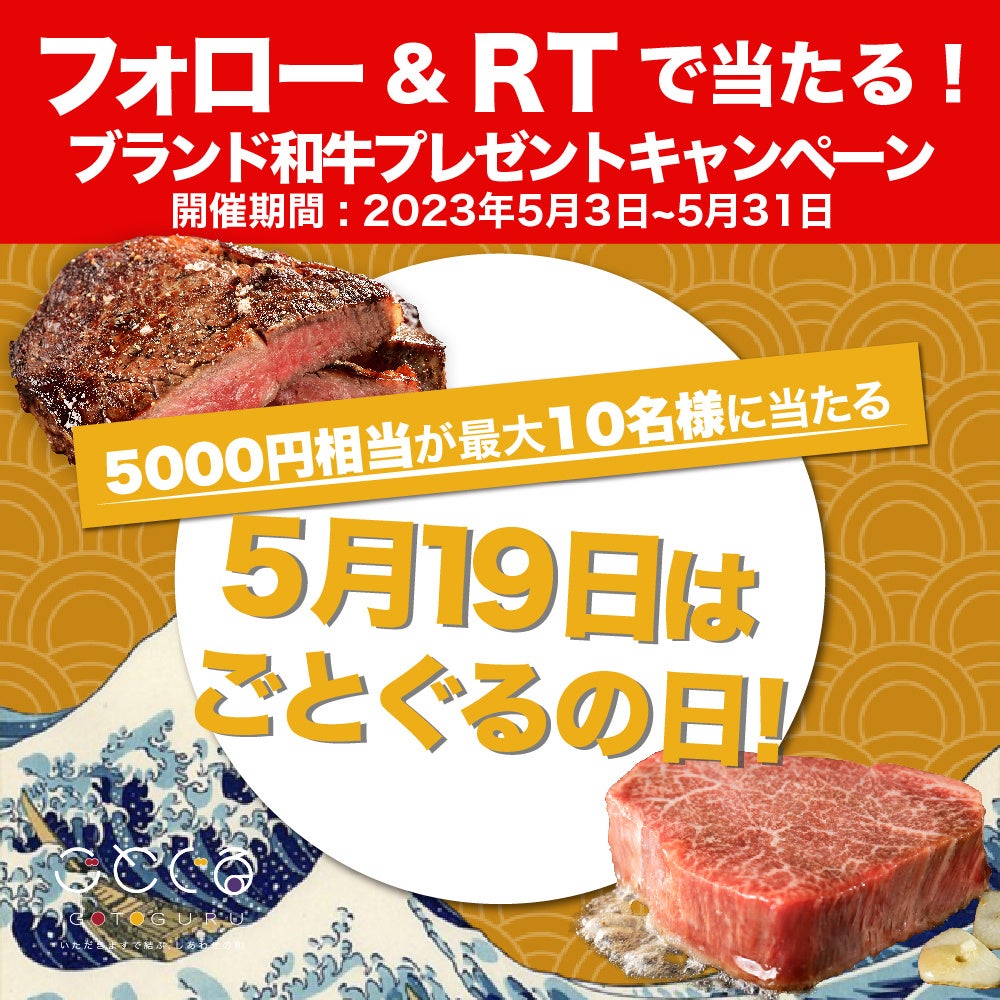 ・参加方法:①ごとぐるのTwitterアカウントをフォロー ②「#5月19日はごとぐるの日」のハッシュタグとともにキャンペーン投稿を引用RT