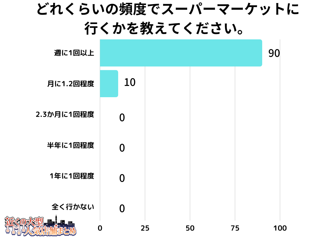 「どれくらいの頻度でスーパーマーケットに行くかを教えてください。」とアンケート調査した結果、1位は『週に1回以上』でした。